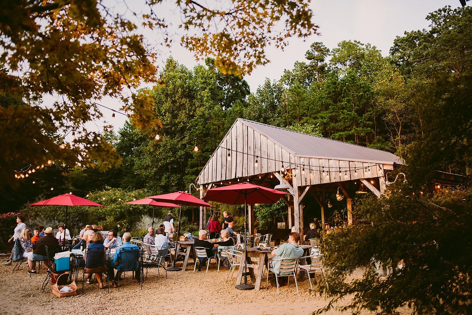 We welcome families, friends, children and dogs (on leash). Relax in our cozy Tasting Room or enjoy the outdoors. Choose seating under the Pavilion or Wisteria Arbor, on a patio or lawn. Bring your own blanket or chairs and sit by our pond or take in the Blue Ridge Mountain View.. Complimentary fire pits, heated tables and columns in winter. We sell snacks and have food trucks for events but feel free to bring your own picnic.